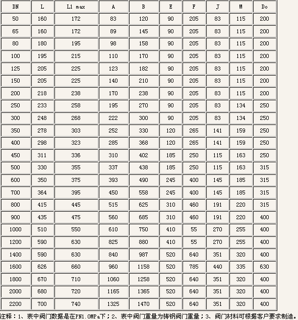 | 公稱通徑 | DN(mm) | 50~2200 | ||
