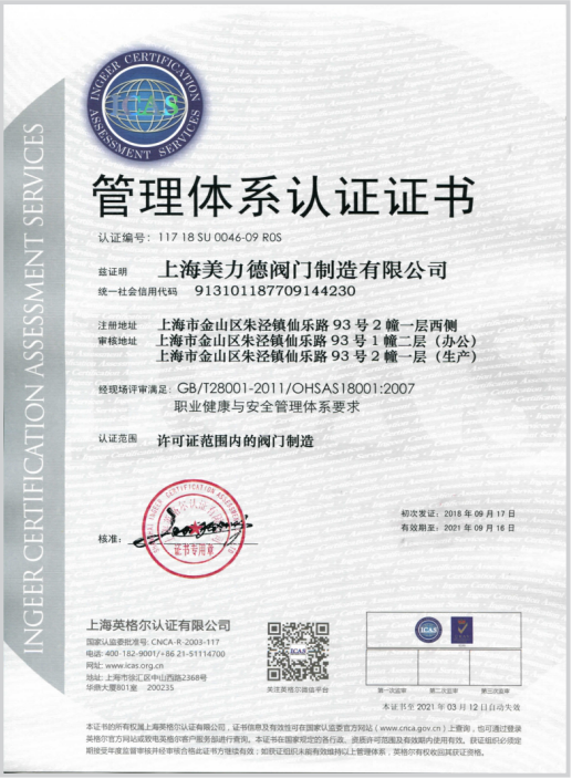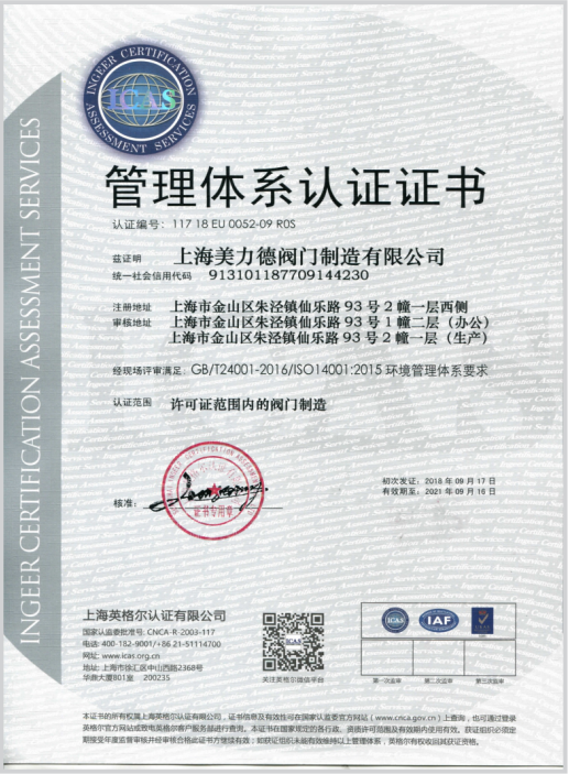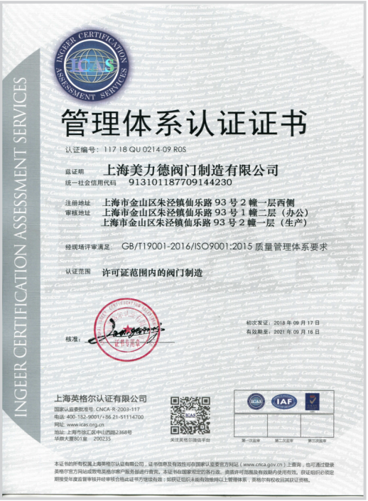 美力德閥門專業(yè)20年為客戶提供良好的服務和高品質(zhì)閥門。我司此次通過認證,說明我司在各項管理系統(tǒng)整合上已達到了國際標準,表明美力德公司能持續(xù)穩(wěn)定地向顧客提供預期和滿意的合格產(chǎn)品。站在消費者的角度,公司以顧客為中心,能滿足顧客需求,達到顧客滿意,經(jīng)過此次的管理體系認證為美力德公司增加了更大的知名度和對我司的產(chǎn)品和服務的肯定認可。