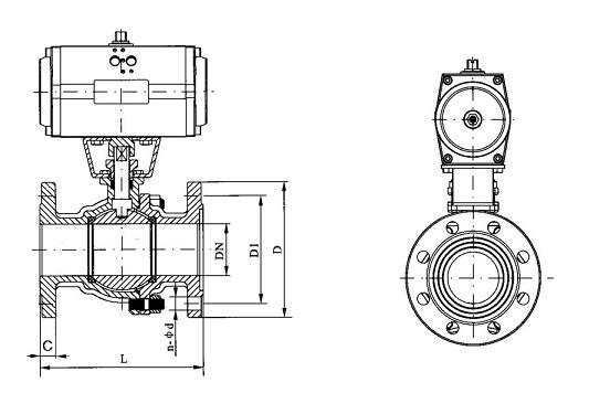 氣動防爆法蘭球閥主要外形及連接法蘭尺寸(4.0MPa)