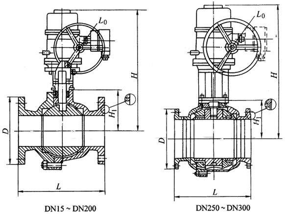 Q941Y-16軟密封電動浮動球閥外形結(jié)構(gòu)尺寸(mm) |