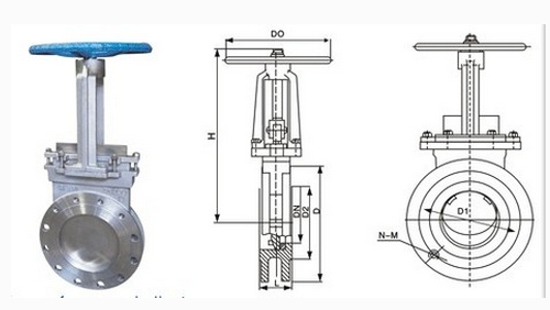 PZ73X手動(dòng)對(duì)夾式刀型閘閥,PZ73HYF手動(dòng)對(duì)夾式刀閘閥主要外形及連接尺寸(mm)