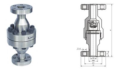 H42Y、H42W 型升降立式止回閥正常處于關(guān)閉狀態(tài),由于管線中進口端介質(zhì)的壓力作用,而克服彈簧阻力使閥門開啟。當(dāng)進口端介質(zhì)壓力低于出口端時,彈簧將閥芯推向閥座而使閥門關(guān)閉,阻止介質(zhì)逆流,故起止回作用。